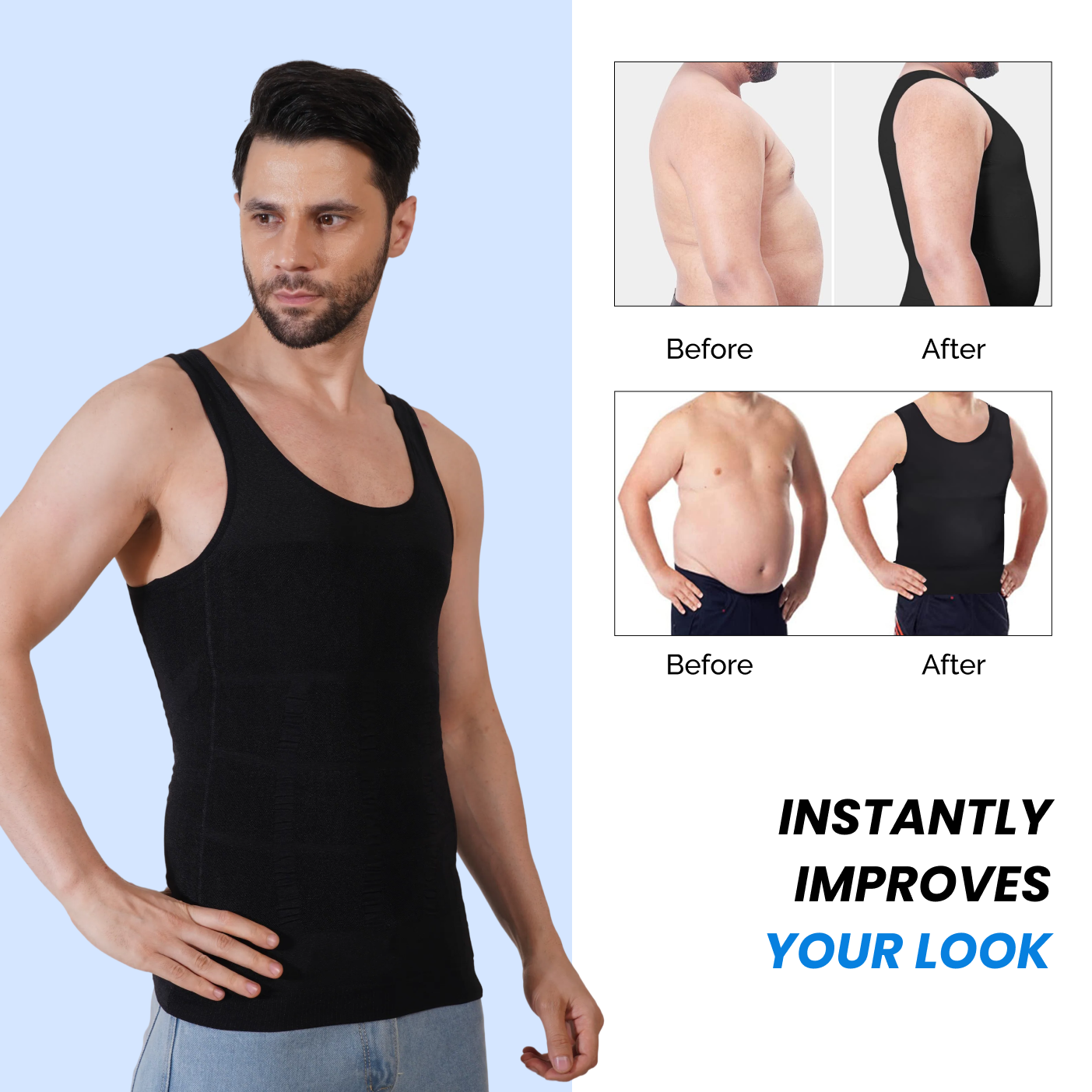 Our tanks are designed to hide man boobs by applying 360° compression to the chest. It provides immediate slimming effect, making you more toned and fit under any clothing.